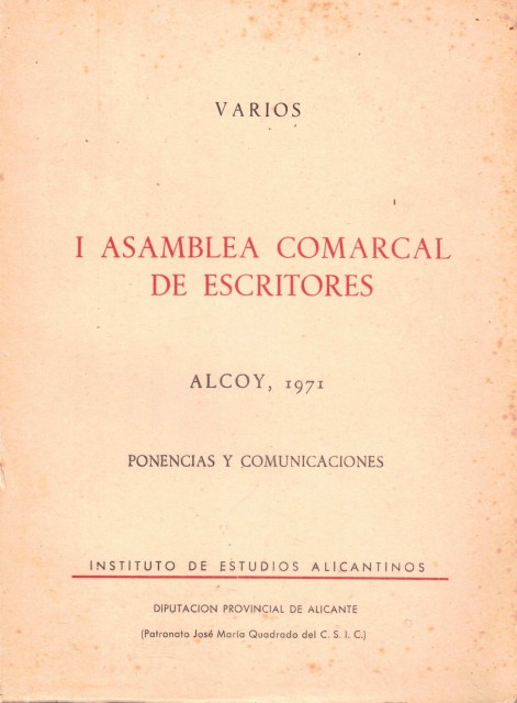 I Asamblea Comarcal de Escritores. Alcoy 1971 (Ponencias y Comunicaciones)