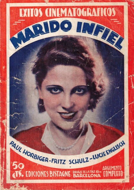 Divertida comedia, interpretada por Fritz Schulz, Paul Horbiger y Lucie English. Argumento Completo. Barcelona s/f (Aprox. 1931). Exitos Cinematográficos. Año I, nº 12. Ediciones Bistagne. 36 pp. 20 x 14. Rústica. Cubiertas algo deslucidas, no afecta al texto.