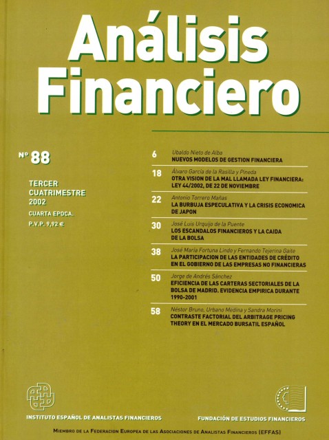 ANALISIS FINANCIERO Nº 65 (Medidas y percepciones de riesgo en la bolsa española; Analisis financiero y alteraciones en la composición de los estados financieros; Liquidez de los planes de pensiones individuales y refugio fiscal temporal y otros)