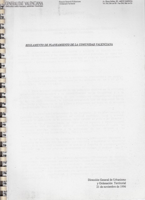 REGLAMENTO DE PLANEAMIENTO DE LA COMUNIDAD VALENCIANA