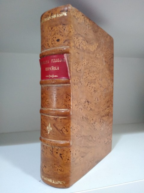 Madrid 1927. Publicaciones de la Revista de Filología Española. Piel. Lomo con nervios, tejuelo y dorados. 468 pp. 20x14. Cantos coloreados. 2 tomos en 1 volúmen.